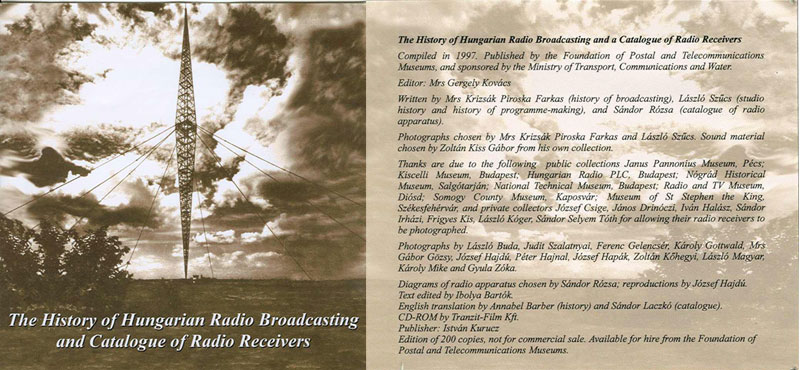 Many people asked me about the story of getting on the Web, some sentences about it. I have always been led by the aim to make it a common property (beside many other reasons) and the problems with storing also became a strong motive power. That's why I donated my collection to the town of Zalaegerszeg in 1997, but unfortunately our museum has dragged on for a long time. In the meantime I had the possibility to surf on the Web and the things I saw were followed by actions. So my redirection activity is not the same as it was. I was really bothered with the fact that I couldn't find any Hungarian addresses and I took a step with a digital camera and with the help of the leader of Zalaszám, Péter Szász. I was the first in my country who got on the Retro-Phonia offered to others too, and everybody can find any kind of "delicacy" to his or her liking. The address of my homepage is: http://www.zalaszam.hu/radio; I always do the refreshing , but I have a lot of material beside these (posters, articles, etc.) and they have been waiting for being visible for anybody else for a long time. Finally, I would like to thank to Dr Péter Szász and to his Colleagues that they Zalaszám Kft. has supported and helped with carrying out my idea and the possibility that Hungary can also join the Radio Collectors' international team. Selyem