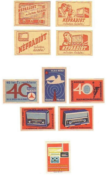 Érdekes rádiós vonatkozású anyagot tudok bemutatni az érdeklődő látogatónak. Pintér László gyufacímke gyűjtő barátom saját gyűjteményéből összeállított egy válogatást, a gyufásdobozokon reklámgrafikaként megjelent rádiókról magyar, csehszlovák, lengyel, jugoszláv, orosz és belga címkékből. Az orosz és belga sort nem bontottuk meg így néhány tv-t és háztartási gépet is, láthat az érdeklődő látogató. Azt hiszem valamiképpen ezeknek az érdekes kordokumentumoknak is itt a helye az Unicumok között!